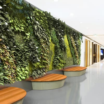 Modern, modular, circular half bench seating in a large low size with Blackbutt hardwood battens and a steel frame in 27 powder-coat colours.